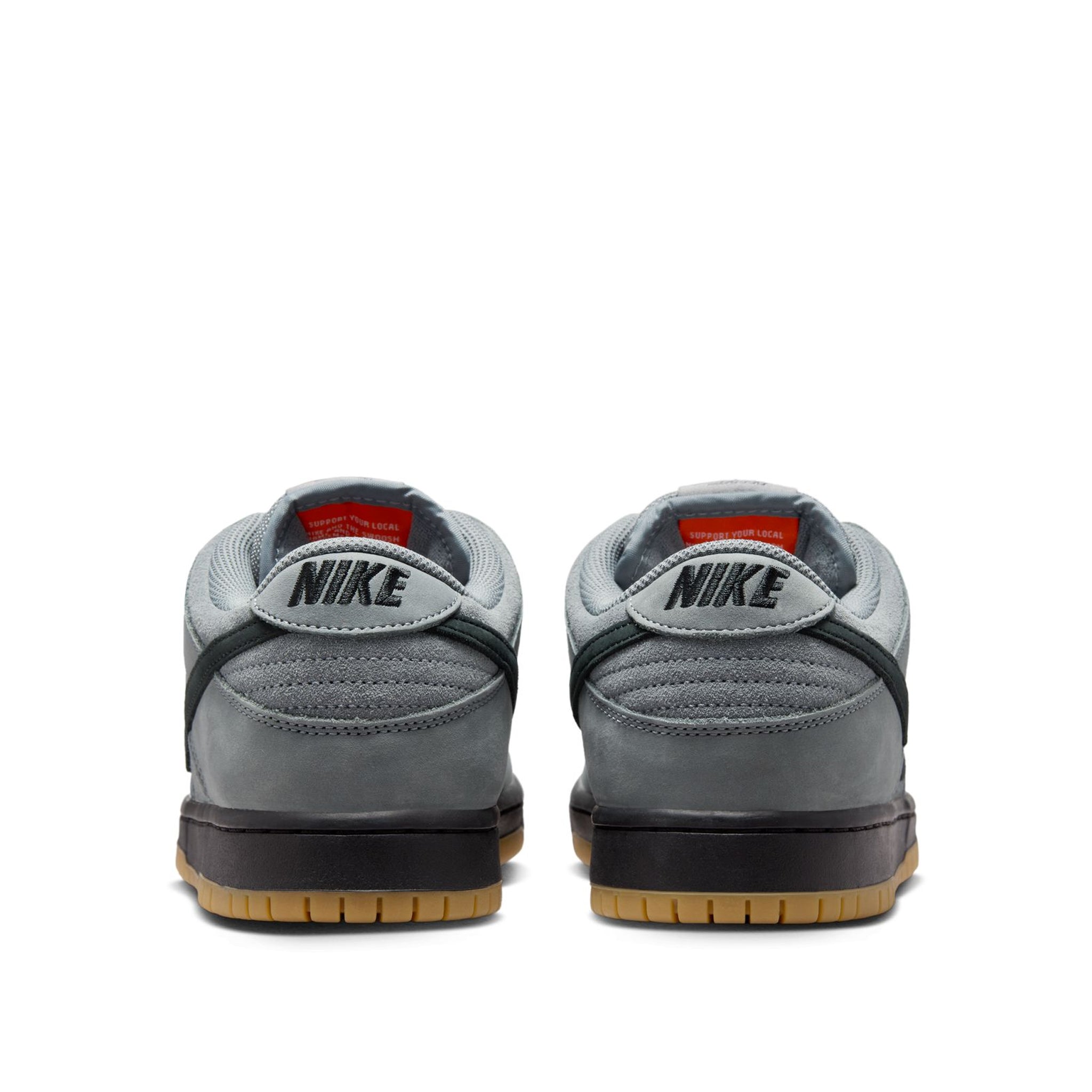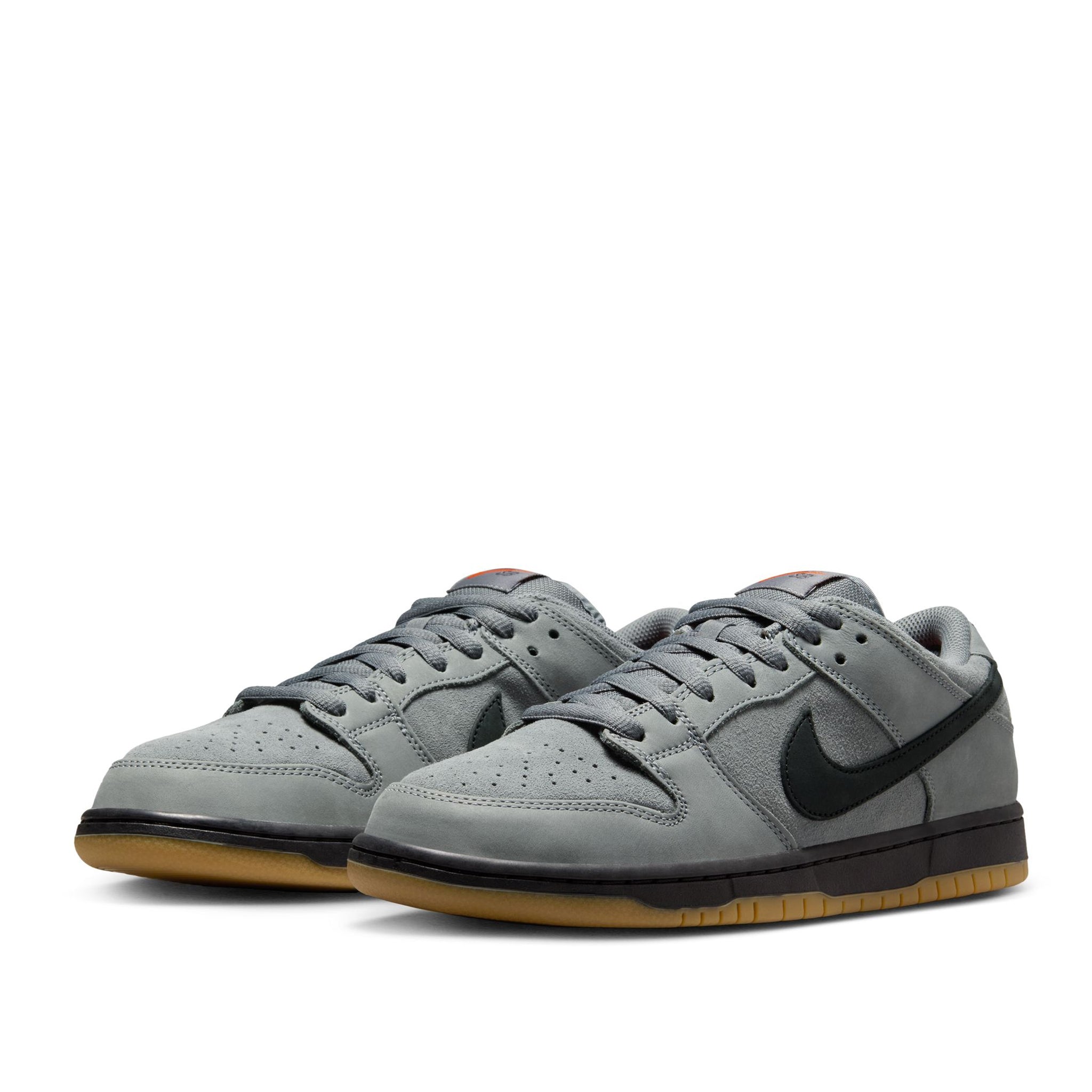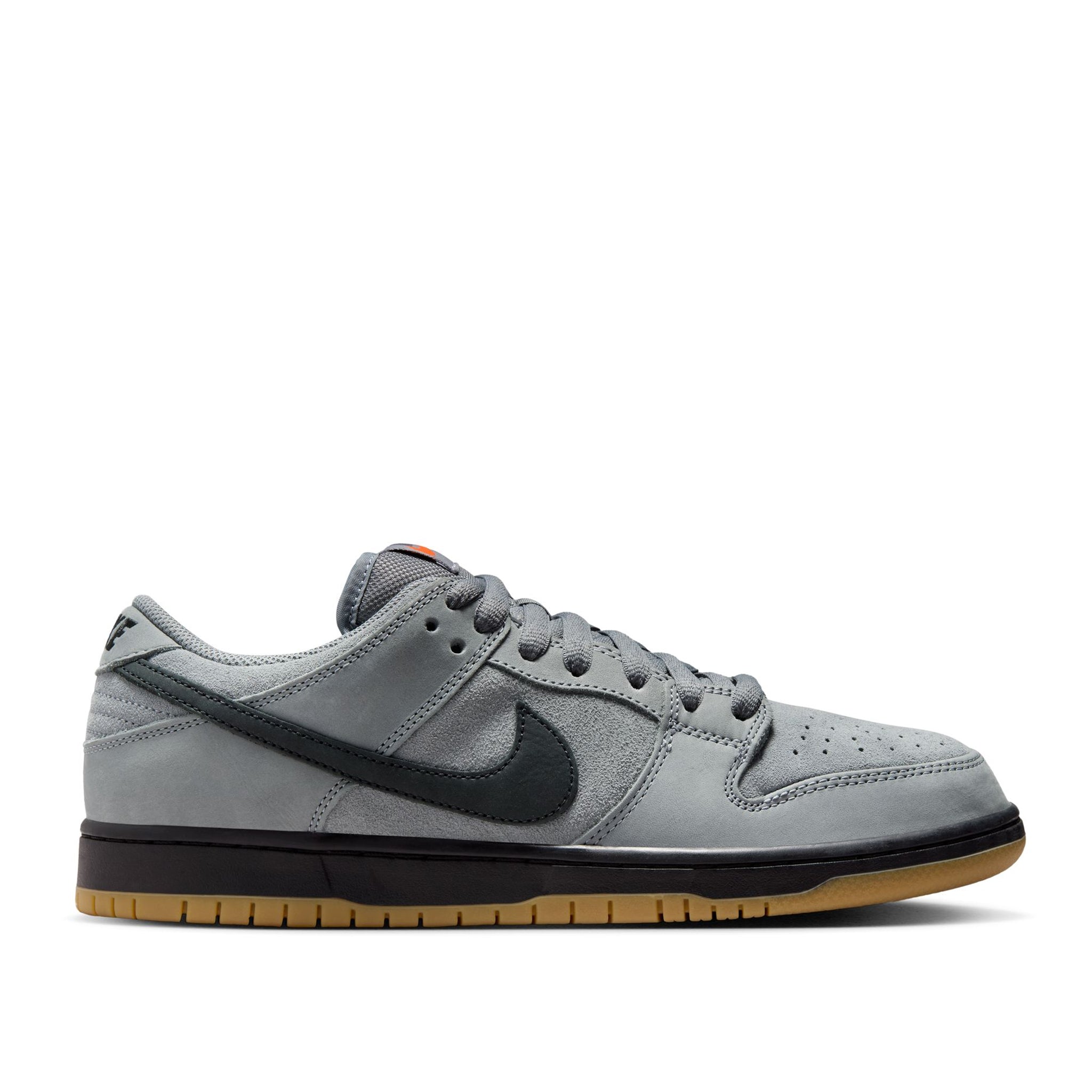 This Nike SB Dunk Low comes dressed in a Cool Grey, Black, Dark Grey, and Gum Light Brown color scheme. The shoes are constructed with suede, nubuck, and leather throughout. Dressed in mostly Cool Grey, Black graces the Swoosh logos and midsole. Subtle White accents grace the Nike embroidered on the heels. Since the shoes are part of the “Orange Label” series, we have an Orange Swoosh on the tongues and a Nike SB label on the midsole. The design is completed with a Gum rubber outsole.