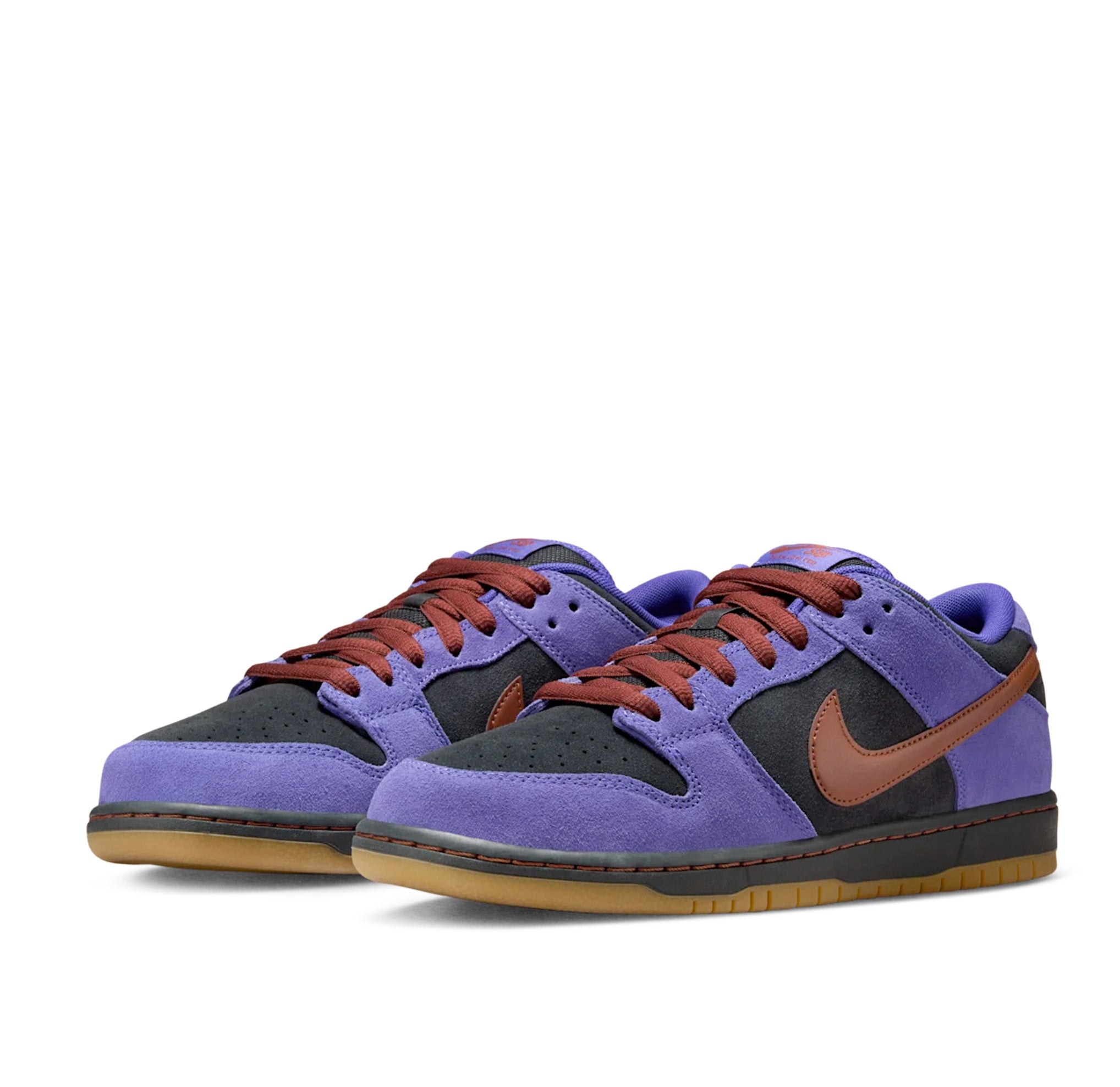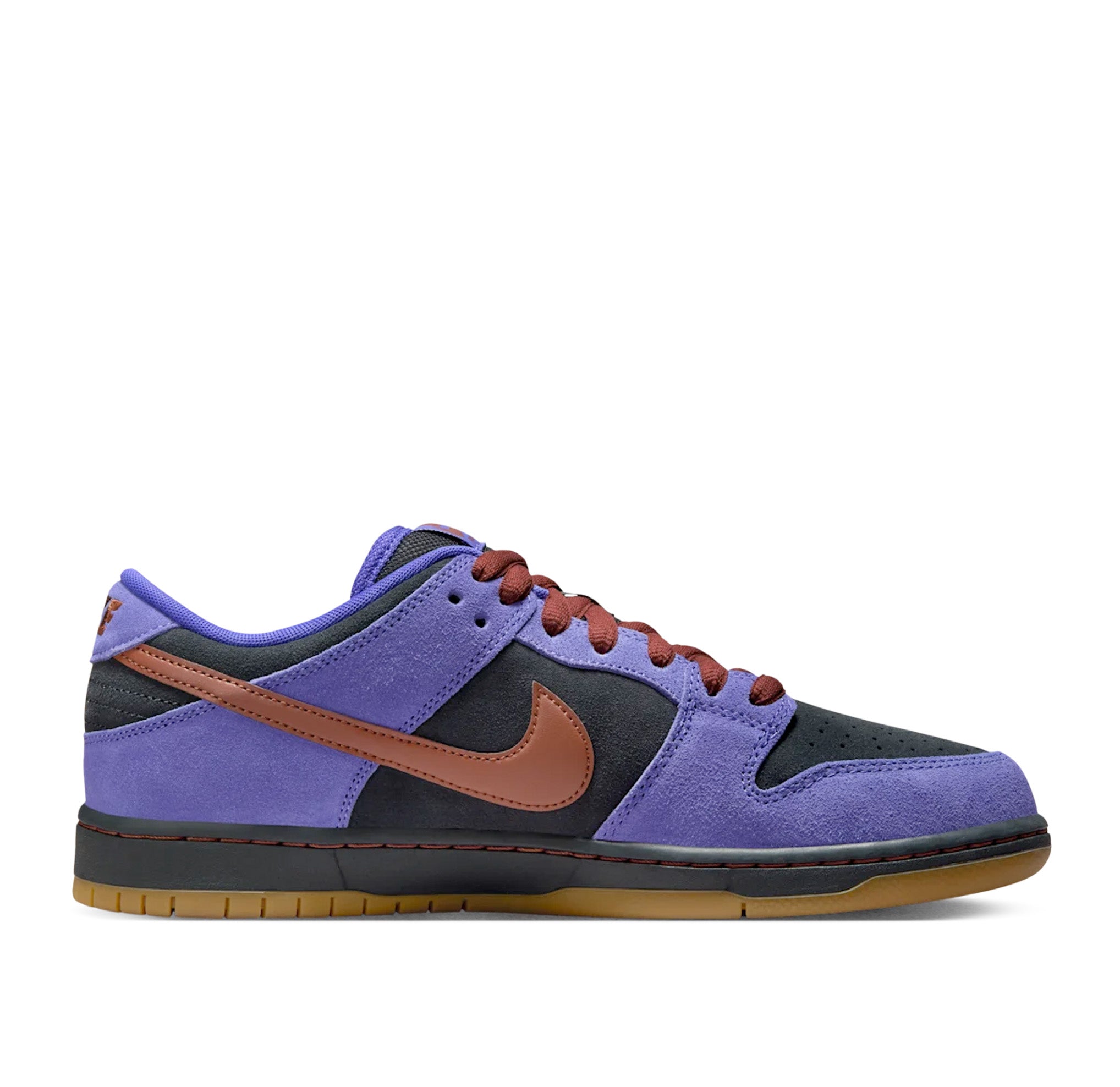 Going off the beaten path for inspiration, this Nike SB Dunk Low combines Persian Violet and Off Noir suede with smooth Cinnamon accents—all drawn from iconic ACG footwear colorways. Air Zoom cushioning in the heel and the signature padded collar and tongue keep this skateboarding icon comfy through your toughest skate sessions.