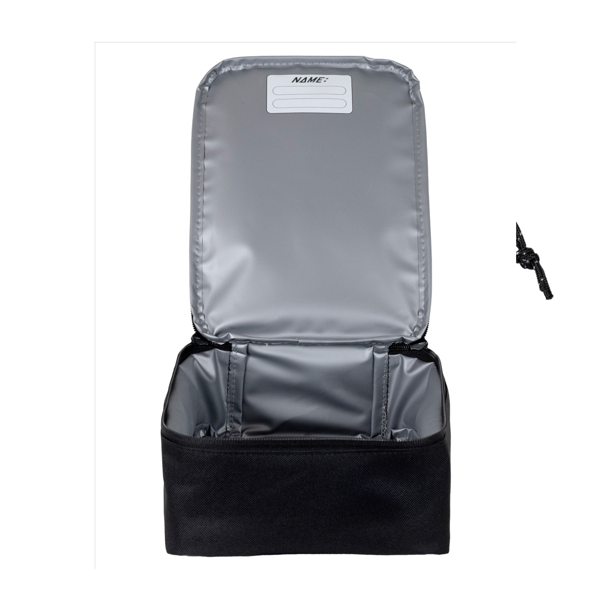 Insulated lunch box with name tag.