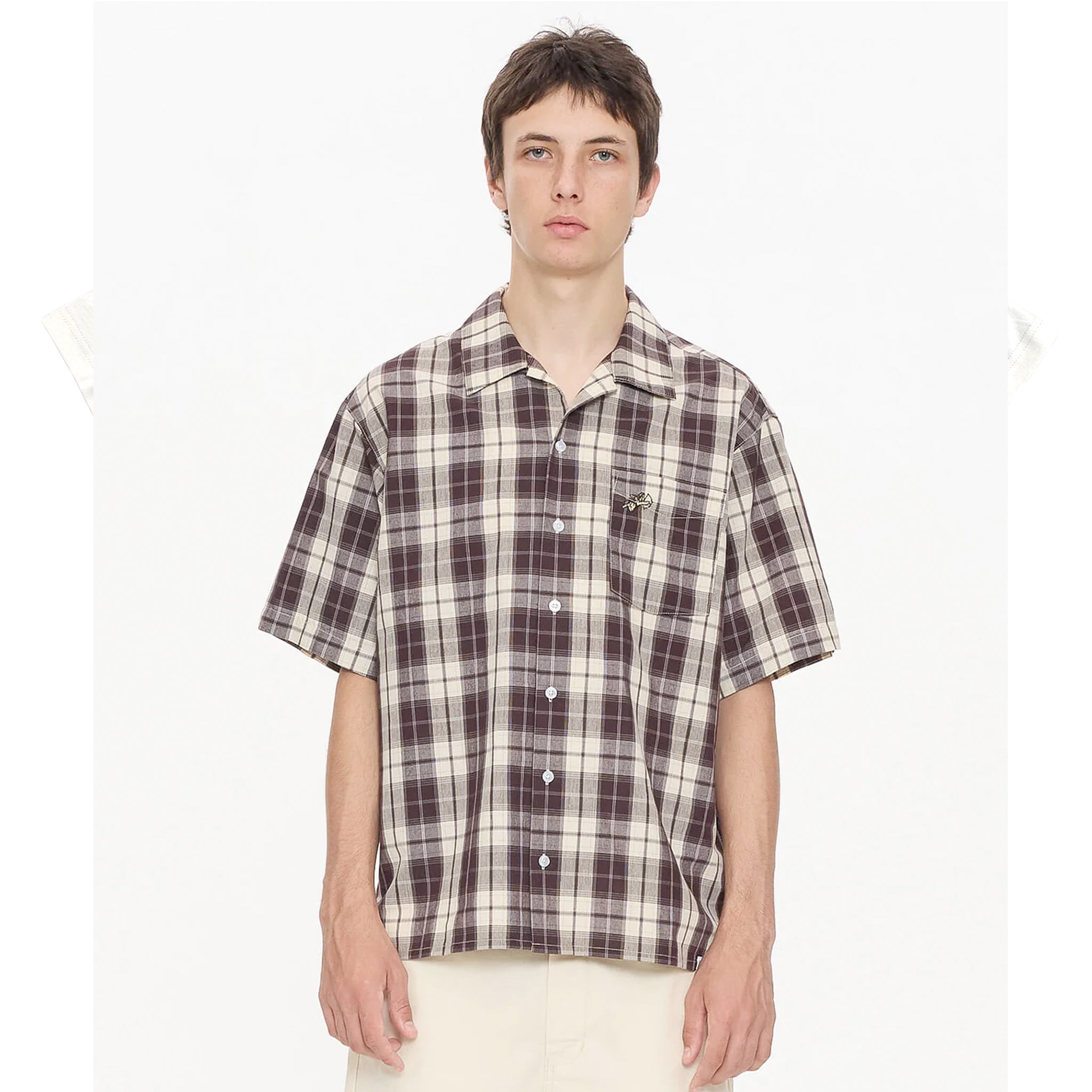 - The Cherub Short Sleeve Shirt 2.0 in Dark Choc brings a fresh spin to a Worship staple with its bold check pattern and easy short-sleeve cut. Crafted from 100% cotton, its lightweight yet structured, giving off that relaxed street edge with a vintage touch. The loose, boxy fit makes it perfect for layering or wearing open over an oversized tee. Pair it baggy shorts Australia pieces for an elevated, effortless warm-weather look. Available now to buy with Afterpay Australia, this checkered shirt is ready for day-to-night outings.